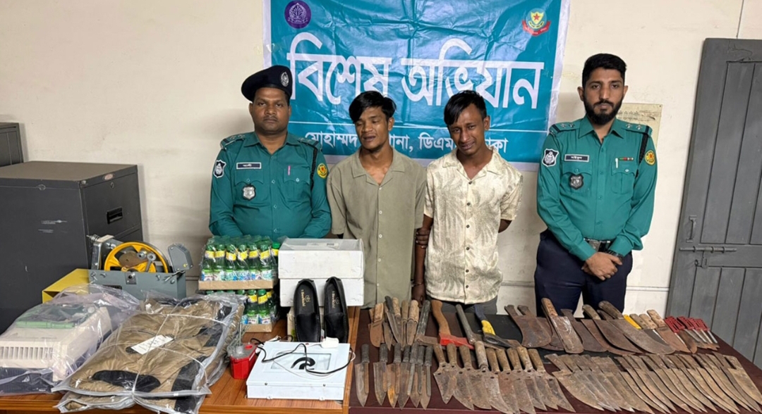 রাজধানীর মোহাম্মদপুরে বিশেষ অভিযান পরিচালনা করে বিপুল পরিমাণ ধারালো অস্ত্র, চোরাই মালামালসহ শফিকুল ইসলাম (২২) ও শরীফ (২৩) নামে দুইজনকে গ্রেপ্তার করেছে পুলিশ।