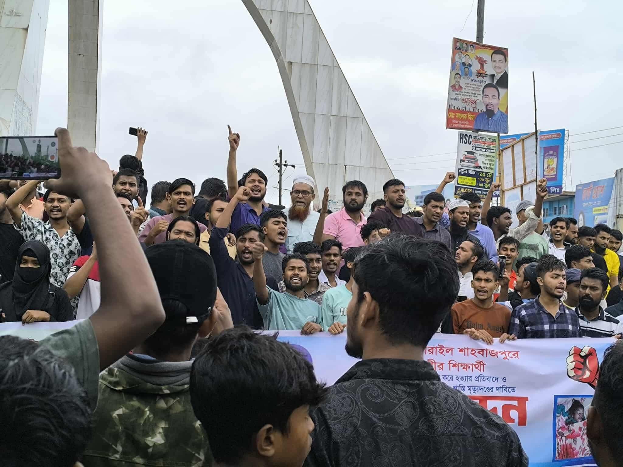 ময়না হত্যাকান্ডের বিচারের দাবীতে ব্রাহ্মণবাড়িয়া বিশ্ব রোডে মানব বন্ধন।