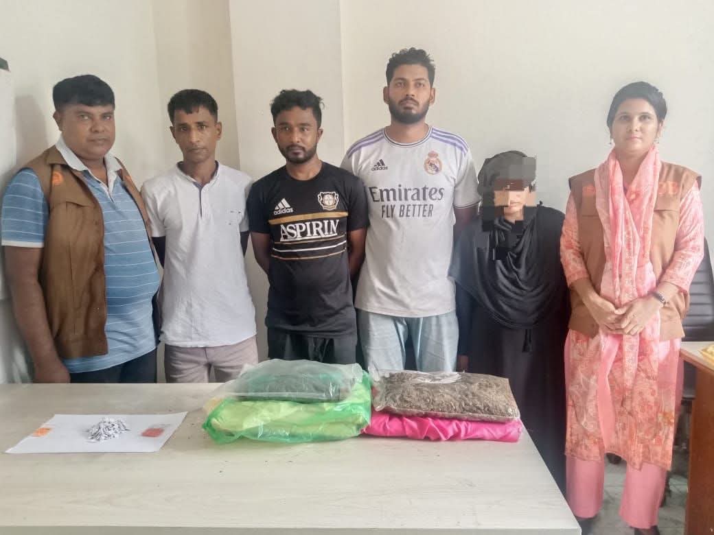 ঢাকা জেলা পুলিশের পুলিশ সুপার জনাব মোঃ আনিসুজ্জামান পিপিএময়ের নির্দেশনায় ঢাকা জেলা ডিবি (দক্ষিন) এর চৌকস ডিবি টিম কেরানীগঞ্জ মডেল, দক্ষিন কেরানীগঞ্জ ও নবাবগঞ্জ থানা এলাকায় পৃথক পৃথক অভিযান পরিচালনা করে ০৯/০৭/২০২৫ খ্রিঃ তারিখ ১৭.৩০ ঘটিকার সময় ঢাকা জেলার কেরাণীগঞ্জ মডেল থানাধীন রামেরকান্দা এলাকা হতে আসামী ১। মোঃ নাহিদ কাজী (২৯), পিতা-রশিদ কাজী, সাং-শাক্তা, থানা-কেরাণীগঞ্জ মডেল, জেলা-ঢাকা ১.৫ কেজি গাঁজা সহ গ্রেফতার করেন। একই তারিখ ১৮.২০ ঘটিকার সময় পৃথক অপর একটি অভিযানে নবাবগঞ্জ থানাধীন বক্সনগর এলাকা হতে আসামী ২। মোঃ আল আমিন বেপারী (২৯), পিতা-মৃত সালাউদ্দিন বেপারী, থানা-নবাবগঞ্জ, জেলা-ঢাকাকে ১৬০ পুড়িয়া হেরোইন ও ১১০ পিস ইয়াবা ট্যাবলেট সহ গ্রেফতার করেন। একই তারিখ পৃথক অপর একটি অভিযানে রাত ২১.৪৫ ঘটিকার সময় ঢাকা জেলার দক্ষিণ কেরাণীগঞ্জ থানাধীন চৌধুরীপাড়া এলাকা হতে আসামী ৩। মানিক মজুমদার (৪০), পিতা- মৃত সত্যরঞ্জন মজুমদার, সাং-খেজুরবাগ, থানা-দক্ষিণ কেরাণীগঞ্জ, জেলা-ঢাকাকে ৫০ পিস ইয়াবা ট্যাবলেট সহ গ্রেফতার করেন। একই তারিখ পৃথক অপর আরও একটি অভিযানে রাত ০০.৪৫ ঘটিকার সময় ঢাকা জেলার কেরাণীগঞ্জ মডেল থানাধীন বন্দনজরগঞ্জ এলাকা হতে আসামী ৪। মোছাঃ লাকী বেগম (৩৮), স্বামী-মোঃ রনি, পিতা-মৃত মোবারক সরদার, সাং-চরকালেকা, থানা-মুলাদি, জেলা-বরিশাল, বর্তমান সাং-মান্দাইল, থানা-কেরাণীগঞ্জ মডেল, জেলা-ঢাকাকে ০১ কেজি গাঁজা সহ গ্রেফতার করেন।