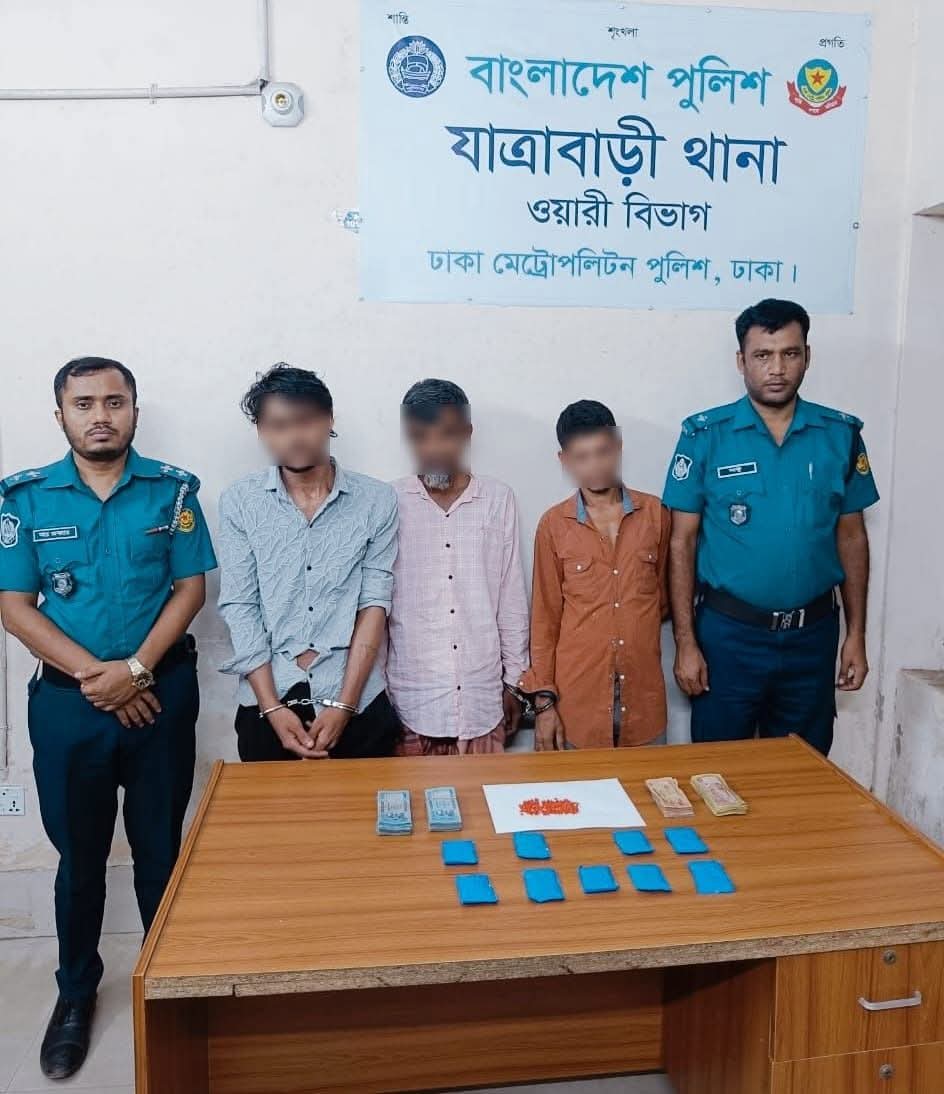 শনিবার (২৬ জুলাই ২০২৫ খ্রি.) রাত আনুমানিক ০৮:২০ ঘটিকায় দক্ষিণ যাত্রাবাড়ী কবরস্থান রোড এলাকায় অভিযান পরিচালনা করে তাদের গ্রেফতার করা হয়।