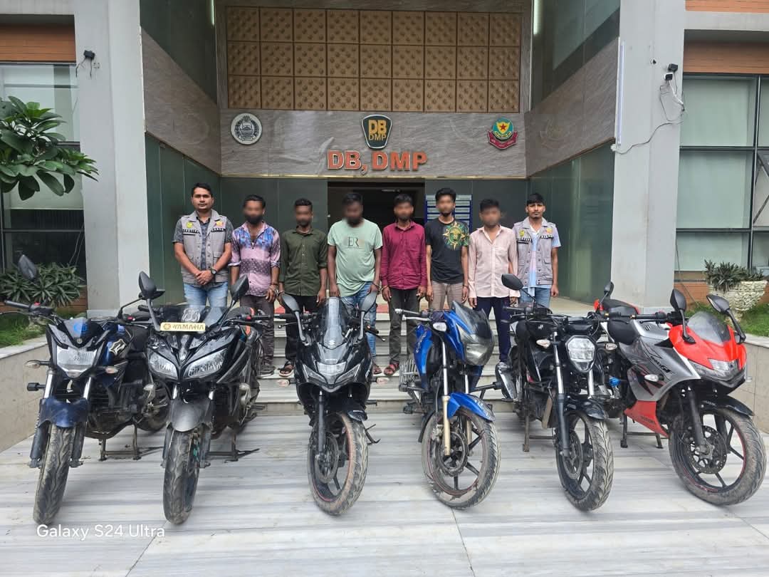 বুধবার (৩০ জুলাই ২০২৫) আনুমানিক দুপুর ০১.২৫ ঘটিকা হতে বিকাল ০৫.২৫ ঘটিকা পর্যন্ত রাজধানীর মগবাজার ও পল্লবী এলাকায় অভিযান পরিচালনা করে এসব মোটরসাইকেল উদ্ধার করে ডিবি-লালবাগ বিভাগ। গ্রেফতারকৃতরা হলো: ১। মোঃ জসিম বেপারী (৪০) ২। মোঃ মোশারফ হোসেন কামাল (৩৮) ৩। মোঃ আনোয়ার হোসেন (২৫) ৪। মোঃ আরিফ (৩৪) ৫। মোঃ আকিব (২৫) ৬। মোঃ রাসেল রানা (২৫) । এ সময় তাদের হেফাজত হতে ছয়টি চোরাই মোটরসাইকেল উদ্ধার করা হয়।
